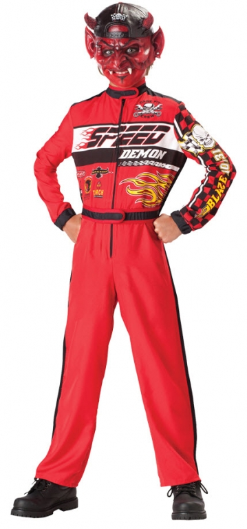 Costume includes: Jumpsuit with racing graphics and vinyl mask.
